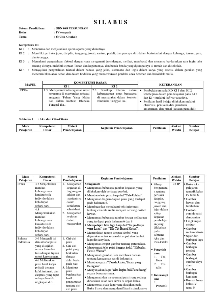 Rpp 1 lembar kelas 4 tema 6 format satu lembar. Berikut adalah pembahasan soal pilihan ganda 1 sampai 25 dengan subtema : Silabus kelas 4 tematik tema 6. Download silabus kelas 6 semester 2 ( tema 6, tema 7, tema 8, tema 9). Salah satunya dengan pas atau penilaian akhir semester.