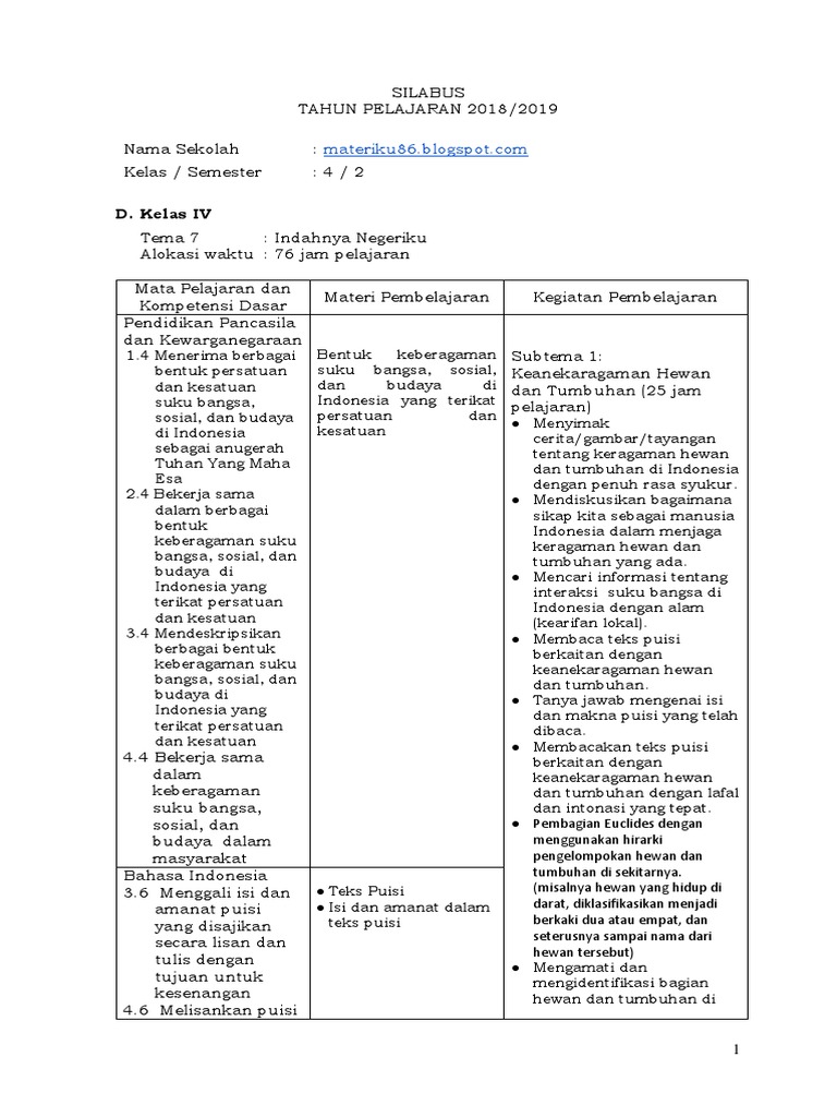 Berikut ini adalah silabus kelas 1, 2, 3, 4, 5, 6, kurikulum 2013 semester 1 dan semester 2 sebagai berikut silabus tema 4 : Silabus merupakan rencana pembelajaran pada suatu kelompok mata pelajaran dengan tema tertentu, yang mencakup standar kompetensi, kompetensi dasar, materi pembelajaran silabus kelas 4 sd kurikulum 2013 revisi 2018 ini dibuat sesuai dengan buku kelas 4 kurikulum 2013 revisi 2018. Perangkat pembelajaran lengkap berupa silabus kelas 4 kurikulum 2013 revisi 2020 dan mudah untuk anda download. Silabus kelas 4 sd/mi kurikulum 2013 revisi 2020 ini telah mencakup semua tema, yang mana terdapat 8 tema pada pembelajaran k13 kelas 4. Lingkungan bersih sehat dan asri. Silabus kelas 4 tema 6 st 1. Silabus kelas 4 tematik tema 6. Pembelajaran kelas 6 sekolah dasartematik kurikulum 2013tema 4 globalisasisubtema 2 globalisasi dan manfaatnyapembelajaran 4semoga bermanfaat untuk belajar. Bapak ibu guru sd, demikianlah yang dapat disampaikan mengenai silabus tematik kelas 4 sd semester 2 kurikulum 2013 revisi 2017, semoga bermanfaat bagi kita semua, aamiin. Rpp 1 lembar kelas 4 tema 6 format satu lembar. Rpp tematik kelas 2 sd silahkan unduh link di bawah: Berikut ini adalah silabus kelas 1, 2, 3, 4, 5, 6, kurikulum 2013 semester 1 dan semester 2 sebagai berikut silabus tema 4 : Kela kelas s iv iv.