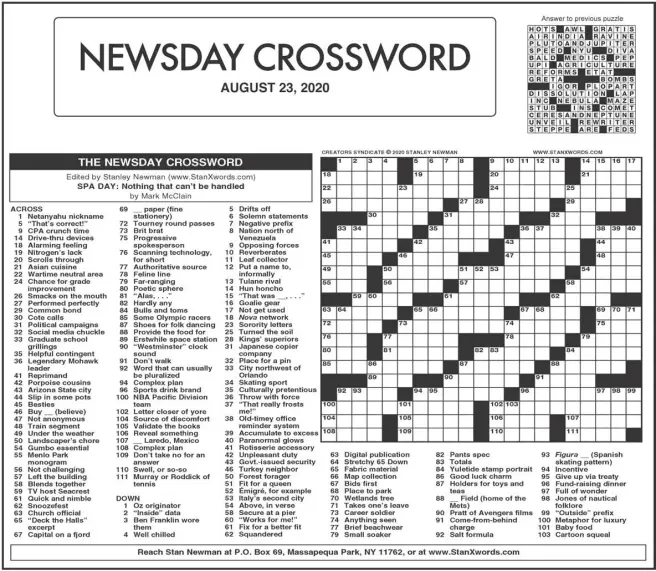 Newsday Crossword Puzzle September 25 2020 : These answers for wordscapes daily puzzles are accurate as we play the game ourselves.. Want to score 100% in the impossible crossword puzzle quiz by bequizzed? The daily puzzle consists of difficult words that is why we have. This page will help you with new york times mini crossword september 25 2020 answers, cheats, solutions or walkthroughs. Just like you, we enjoy playing new york times mini crossword game. If you have more questions about mini crossword of september 25, 2020 comment please this page and we can try help you.